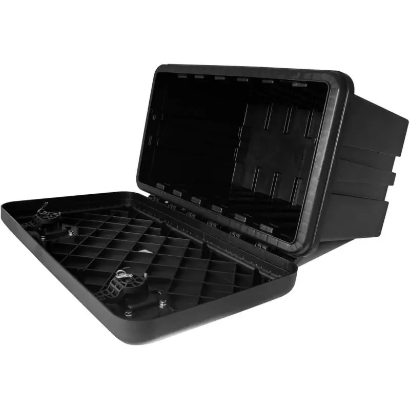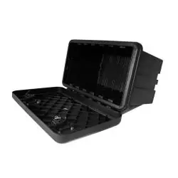 Pokrywa wyposażona w uszczelkę z tworzywa TPE zapewnia pełną ochronę przed pyłem, wilgocią i deszczem. Dwa zamki bębenkowe z czterema kluczami chronią zawartość przed kradzieżą i przypadkowym otwarciem podczas transportu. Wysoka odporność na paliwo, oleje i promieniowanie UV gwarantuje niezawodność przez wiele lat użytkowania.