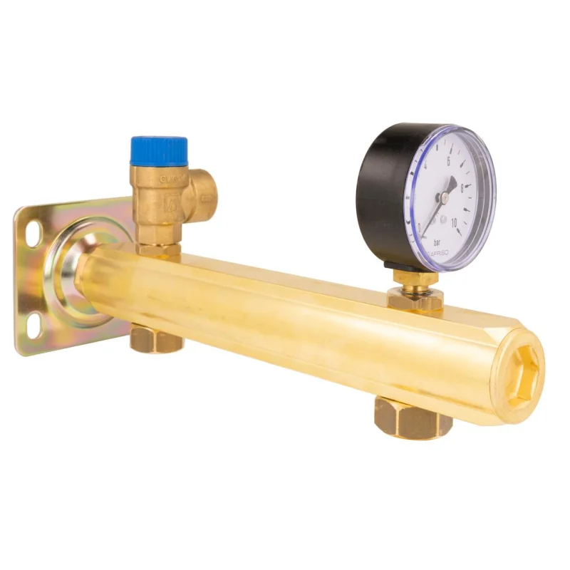 Grupa bezpieczeństwa AFRISO BSB to kompletne, fabrycznie zmontowane i szczelne rozwiązanie przeznaczone do instalacji ciepłej wody użytkowej. Chroni zasobnik oraz instalację przed nadmiernym wzrostem ciśnienia, umożliwia kontrolę parametrów pracy i pozwala na łatwe podłączenie naczynia przeponowego.