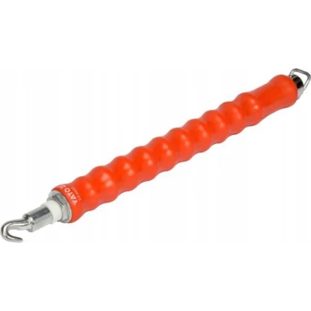 Automatyczny klucz do drutu wiązałkowego to niezastąpione narzędzie przy łączeniu prętów zbrojeniowych. Silne pociągnięcie rękojeści powoduje trzykrotne obrócenie haka, co automatycznie skręca zaczepiony drut. Rękojeść powleczona jest miękkim tworzywem, które zwiększa komfort pracy i chroni nadgarstki przed przeciążeniem.