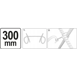 Zaczepy drutu należy zahaczyć na automatycznym haku, a następnie płynnie pociągnąć rękojeść. Hak obróci się kilkukrotnie, skręcając zaczepiony drut. Narzędzie pozwala na szybkie i precyzyjne wiązanie drutu, bez nadmiernego wysiłku fizycznego.