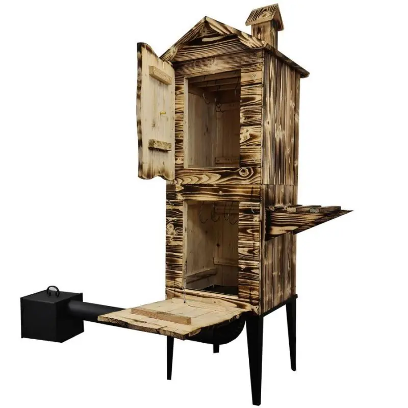 Wędzarnia drewniana ogrodowa EH-010OP to zaawansowany, dwukomorowy model zaprojektowany dla osób, które chcą cieszyć się autentycznym smakiem wędzonych potraw bez opuszczania własnego ogrodu. Solidna konstrukcja, precyzyjne prowadzenie dymu i wysoka jakość wykonania sprawiają, że to jedno z najbardziej funkcjonalnych urządzeń w tej