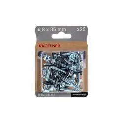 Łącznik samowiercący KOELNER 4,8x3,5 mm do blach to praktyczne rozwiązanie do szybkiego i trwałego łączenia elementów metalowych w pracach budowlanych oraz instalacyjnych. Dzięki konstrukcji samowiercącej zapewnia sprawny montaż bez wstępnego nawiercania, a odporność na korozję pomaga utrzymać stabilność połączeń także w wymagających warunkach. Opakowanie zawiera 25 sztuk, co ułatwia realizację większych zadań.