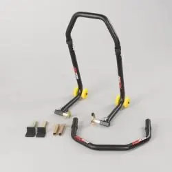 Model 2w1 umożliwia podnoszenie koła przedniego lub tylnego, co ułatwia serwisowanie, czyszczenie i codzienną obsługę motocykla.