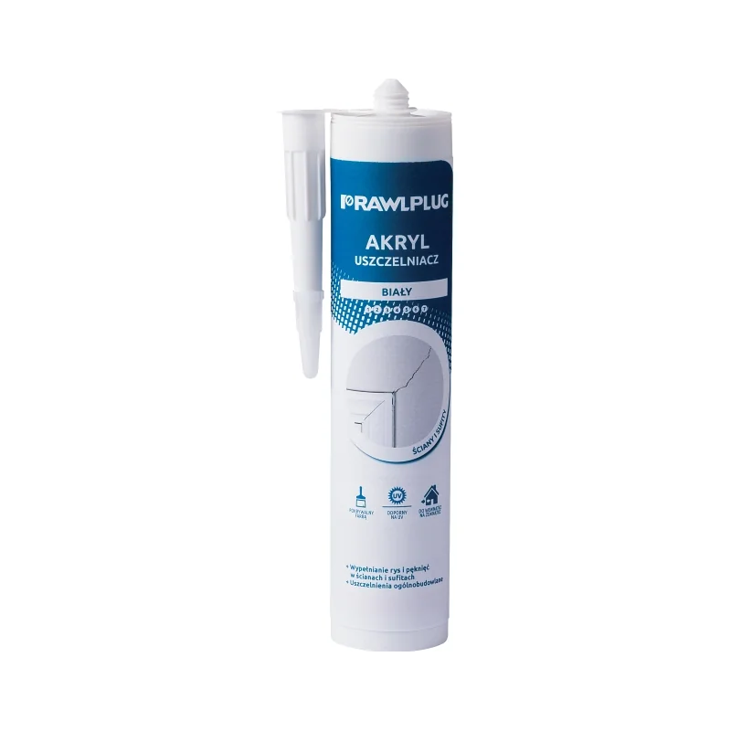 Uszczelniacz akrylowy biały 300 ml Rawlplug to praktyczny produkt do prac wykończeniowych, remontowych i montażowych, który sprawdza się przy wypełnianiu szczelin, pęknięć i połączeń. Dzięki uniwersalnemu zastosowaniu oraz wygodnej formie kartusza jest odpowiedni do użytku w domu, mieszkaniu, warsztacie i podczas różnych prac budowlanych. To