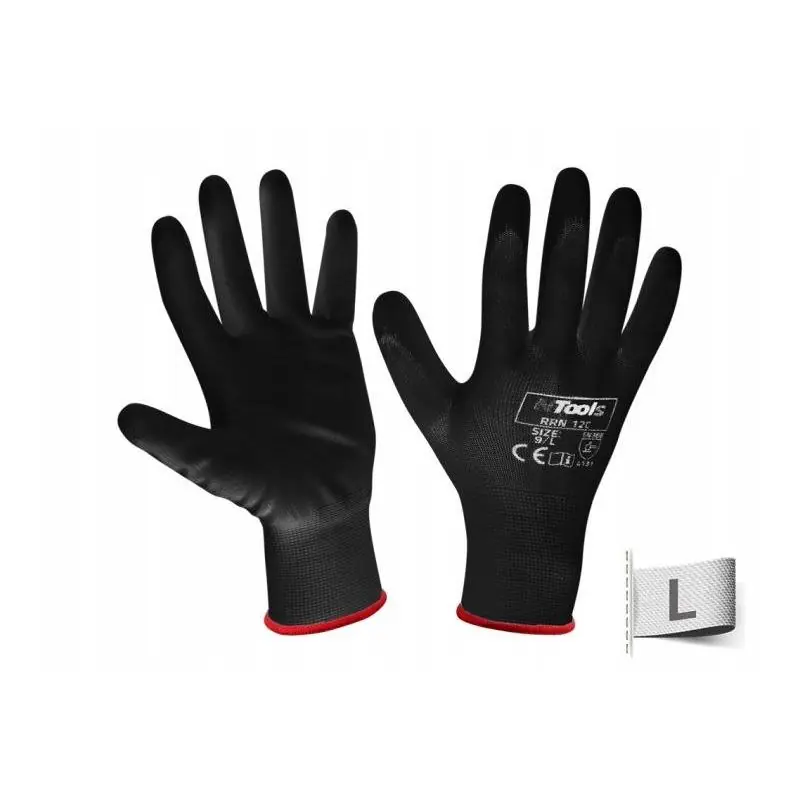 Rękawice robocze nylonowo-poliuretanowe NTools RRN 12C rozmiar 9/L to praktyczne rękawice ochronne do pracy, które łączą wygodę użytkowania, dobrą chwytność i odporność mechaniczną. Wykonane z niepylącej tkaniny nylonowej oraz pokryte od strony chwytnej warstwą poliuretanu (PU), sprawdzają się podczas prac warsztatowych, przemysłowych i