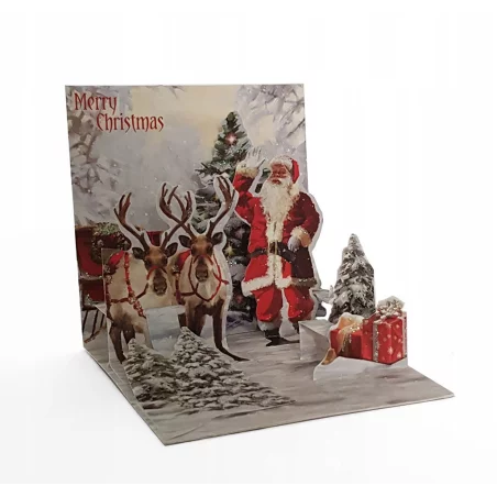 MINI KARTKA ŚWIĄTECZNA 3D 8 X 8 CM MIKOŁAJ I RENIFERY