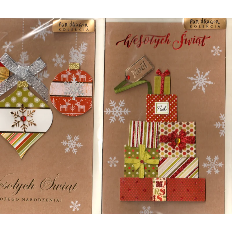 Podaruj bliskim odrobinę magii świąt! Elegancki karnet z napisem „Wesołych Świąt” to idealny sposób, by przekazać ciepłe życzenia w wyjątkowy sposób. Klasyczny design z bożonarodzeniowymi motywami (choinki, śnieżynki, renifery lub bombki – w zależności od wzoru) wprowadza w świąteczny
