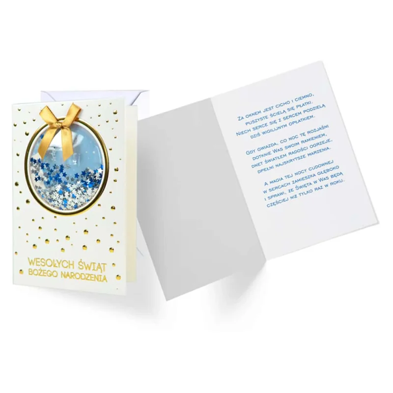Kartka okolicznościowa z okazji Świąt Bożego Narodzenia to doskonały dodatek do prezentu. Niesamowity karnet okolicznościowy jest pamiątką, którą można zachować na całe życie. Do karnetu okolicznościowego dołączona jest koperta, w której możesz umieścić nie tylko kartkę, ale również pieniądze lub papierowy voucher.