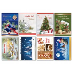 Kartka świąteczna "Wesołych Świąt z kopertą" to piękny, klasyczny świąteczny design, który roztacza atmosferę radości i ciepła. Na przedniej stronie kartki znajduje się uroczy ilustracyjny motyw związany z Bożym Narodzeniem, jak choinka, śnieg lub renifer. Całość jest w pełni kolorowa i przyciągająca wzrok.