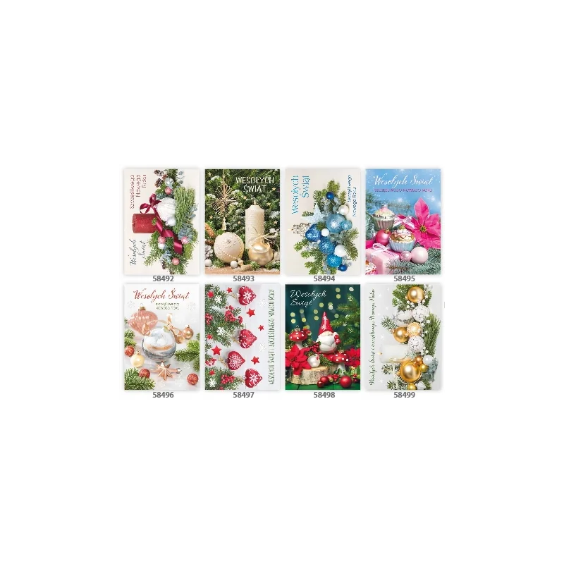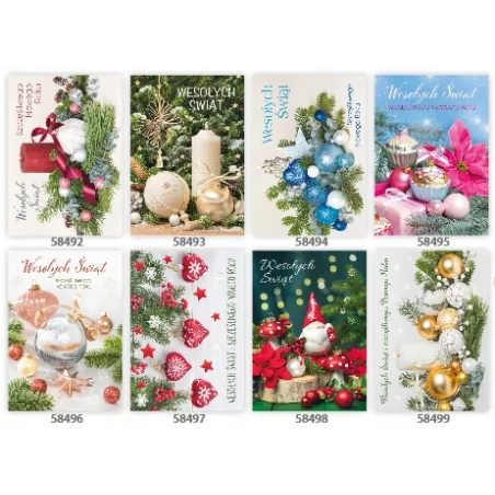 Kartka świąteczna "Wesołych Świąt z kopertą" to piękny, klasyczny świąteczny design, który roztacza atmosferę radości i ciepła. Na przedniej stronie kartki znajduje się uroczy ilustracyjny motyw związany z Bożym Narodzeniem, jak choinka, śnieg lub renifer. Całość jest w pełni kolorowa i przyciągająca wzrok.