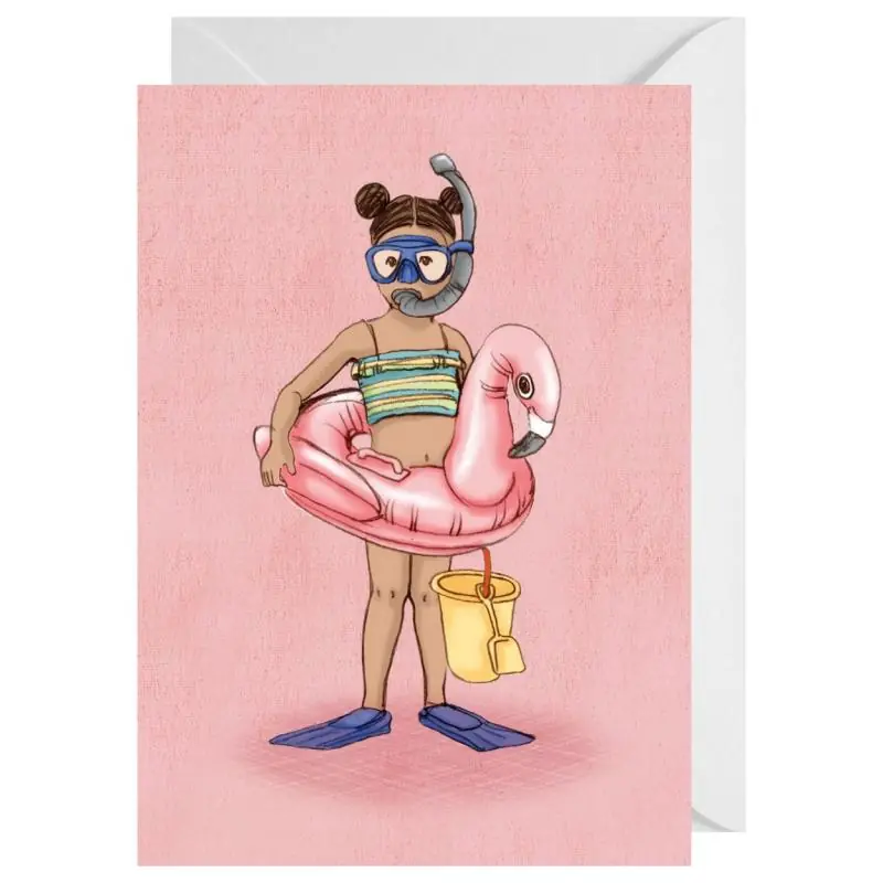 Uroczy karnet okolicznościowy Belle and Boo – Flaming odzwierciedla dziecięce zabawy, przygody i marzenia. Idealny do własnoręcznego wpisania życzeń, karnet przedstawia radosny świat dzieciństwa – pluskanie się w kałużach, zabawy w piasku, puszczanie latawców, przebieranki oraz przyjęcia