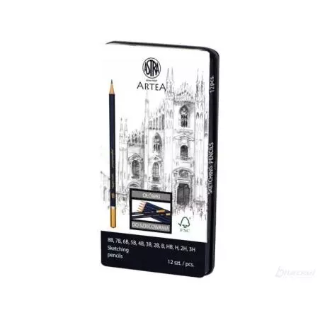 Ołówki do szkicowania Astra Artea 12 sztuk w metalowym pudełku