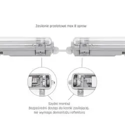 Model przystosowany jest do dwóch źródeł światła z trzonkiem G13, co umożliwia zastosowanie energooszczędnych świetlówek LED dopasowanych do indywidualnych potrzeb użytkownika.