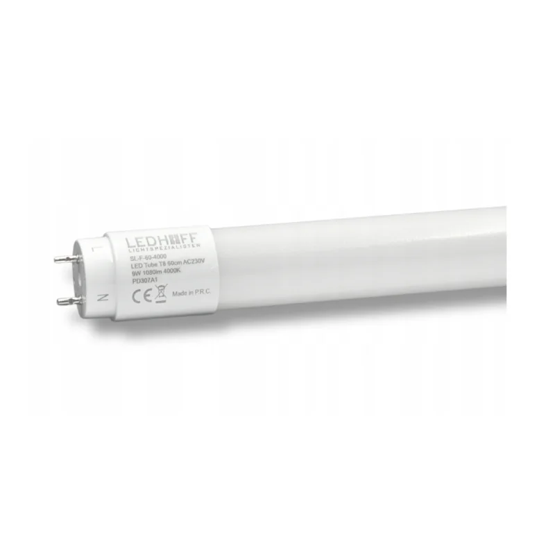 Świetlówka liniowa LED T8 Ledhoff 9 W o długości 60 cm to wydajny i nowoczesny zamiennik klasycznych jarzeniówek 18 W. Oferuje bardzo wysoką skuteczność świetlną 120 lm/W oraz strumień świetlny 1080 lumenów, zapewniając mocne, równomierne oświetlenie przy jednoczesnym niskim zużyciu energii. Neutralna barwa światła 4000 K sprzyja