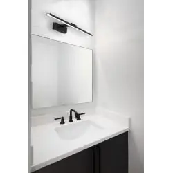 Kinkiet łazienkowy Ledhoff czarny LED 12 W 60 cm to nowoczesna lampa nad lustro, która zapewnia równomierne, komfortowe oświetlenie do codziennej pielęgnacji. Zintegrowane diody LED emitują neutralne białe światło, a mleczny klosz delikatnie je rozprasza, ograniczając efekt oślepiania. Matowa, czarna obudowa dobrze pasuje do aranżacji nowoczesnych i loftowych, a regulowany kąt świecenia pozwala dopasować kierunek światła do ustawienia lustra.