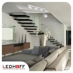 Lampa LEDHOFF Lumio 4x GU10 sprawdzi się w salonie, pokoju, sypialni, kuchni, przedpokoju, garderobie, biurze, bibliotece, lokalu usługowym czy witrynie sklepowej. Dzięki czterem niezależnie regulowanym reflektorom może służyć do oświetlenia ogólnego, akcentowego lub dekoracyjnego, podkreślając wybrane strefy, meble, obrazy, lustra i elementy aranżacji.
