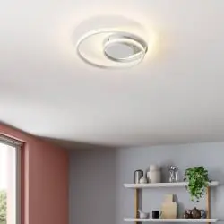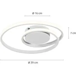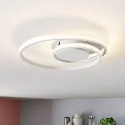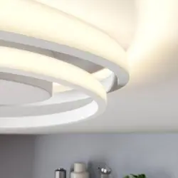 Lampa sufitowa LED Lindby Kyron 22W to nowoczesne oświetlenie o spiralnej formie, które doskonale sprawdza się w minimalistycznych i designerskich wnętrzach. Dzięki technologii ściemniania step dim możesz regulować jasność światła bez dodatkowego ściemniacza – bezpośrednio za pomocą standardowego przełącznika ściennego. To funkcjonalne i estetyczne rozwiązanie do salonu, sypialni lub biura.