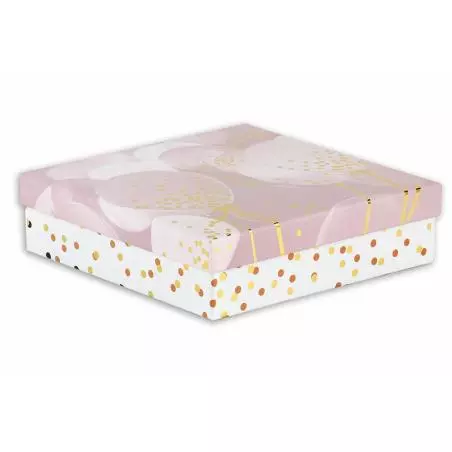 - ozdobione wzorem w kropki oraz balony ze złotymi akcentami
