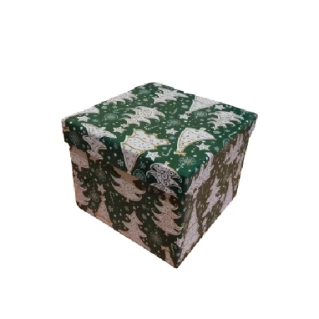 - Pudełko o wymiarach 14 x 14 x 11 cm zostało starannie zaprojektowane z myślą o elegancji i oryginalności. Jego powierzchnia zdobi wyjątkowy motyw choinek, które dodają mu świątecznego uroku. Wzór jest starannie wykonany, tworząc harmonijną kompozycję, która z pewnością przyciągnie uwagę obdarowywanej osoby.