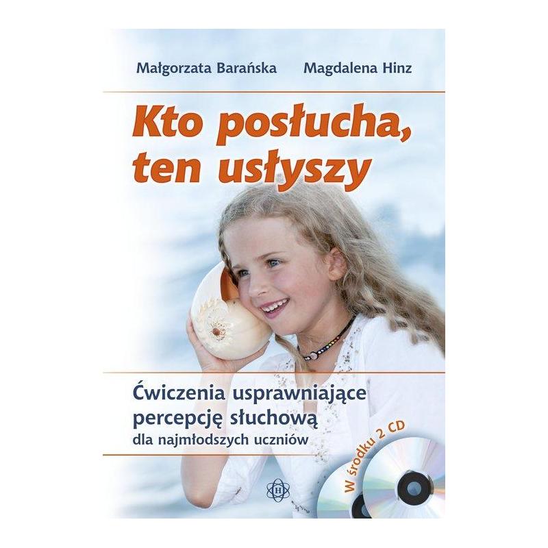Kto posłucha, ten usłyszy jest wyjątkową pozycją wydawniczą. W jej skład wchodzą książka oraz dwie płyty CD, na których zapisano cały materiał potrzebny do ćwiczeń, a także polecenia kierowane do dziecka. Z ćwiczeń zawartych w publikacji mogą korzystać dzieci przygotowujące się do nauki czytania i pisania, a także dzieci, które tę