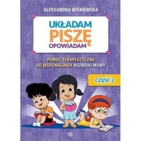 Układam, piszę, opowiadam. Część 2 to pomoc dydaktyczna: dla nauczycieli, terapeutów, logopedów oraz rodziców dla dzieci z niepełnosprawnością lekką lub umiarkowaną dla dzieci posługujących się komunikacją werbalną, alternatywną (AAC) lub wspomagającą z unikatowymi, autorskimi kartami pracy do nauki budowy zdań prostych lub nauki
