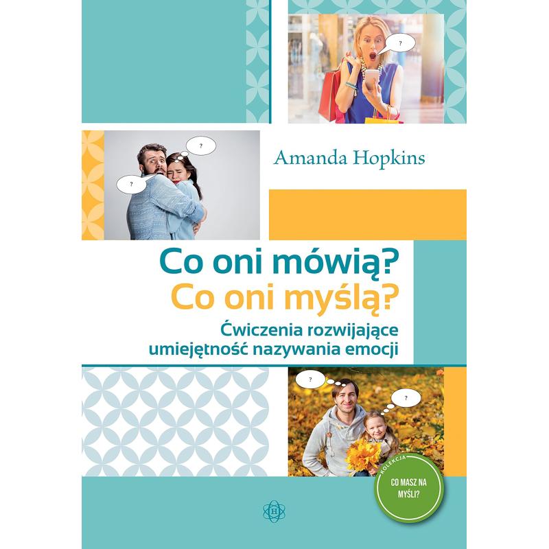 Książka Co oni mówią? Co oni myślą? powstała z myślą o osobach, głównie dzieciach, które mają problemy z rozpoznawaniem myśli i emocji innych. Pomaga ona odczytywać to, co niewypowiedziane, to, co widać dzięki mimice twarzy oraz ruchom i postawie ciała.