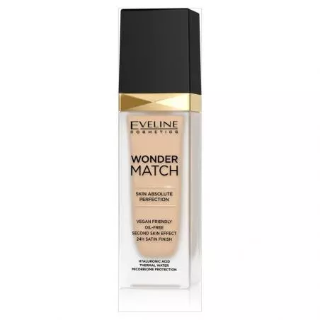 uksusowy podkład Wonder Match jest innowacyjnym połączeniem produktu do makijażu z produktem do pełnej pielęgnacji cery. Przyjemna, dopasowująca się kolorem konsystencja szybko tuszuje niedoskonałości skóry i oznaki zmęczenia. W rezultacie skóra wygląda na świeżą i wypoczętą. Produkt cechuje się również trwałością do 24 godzin, dzięki czemu możesz czuć się pewnie przez cały dzień i noc! Zawiera nadzwyczajne składniki aktywne, takie jak kompleks prebiotyczny, doskonale zachowujący młodość skóry, kwas hialuronowy, który wiążę wodę i przeciwdziała zmarszczkom, wodę termalną bogatą w regenerujące i odświeżające mikroelementy.