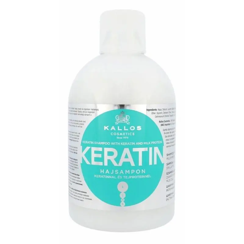 Kallos Keratin regenerujący szampon do włosów 1000 ml to profesjonalny szampon z keratyną i proteinami mlecznymi, przeznaczony do włosów suchych, łamliwych i zniszczonych, szczególnie po farbowaniu, rozjaśnianiu i stylizacji termicznej. Formuła skutecznie oczyszcza skórę głowy, jednocześnie wzmacniając i wygładzając strukturę włosa już