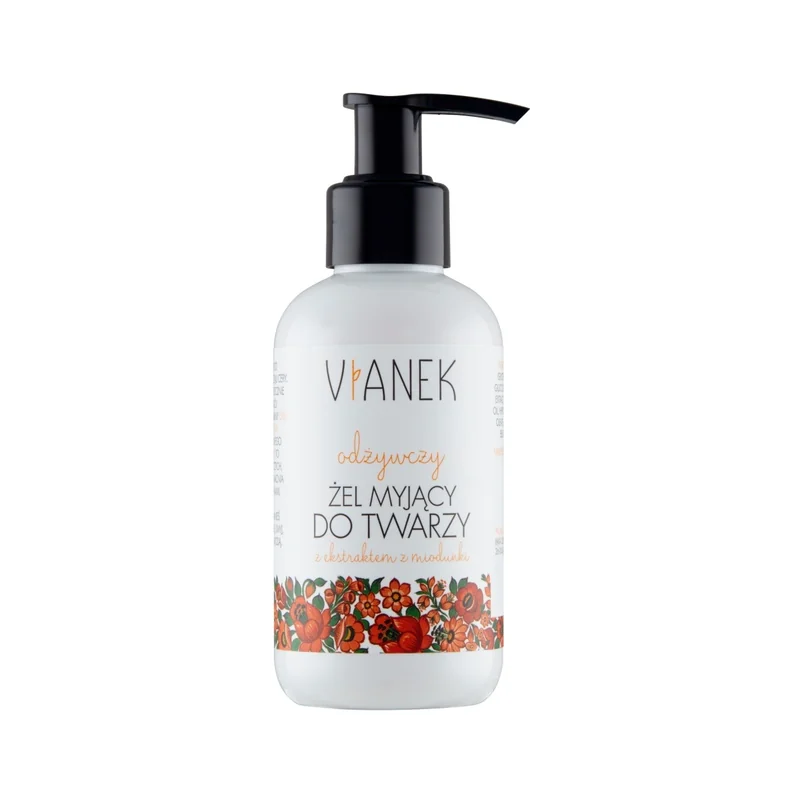 Odżywczy żel myjący do twarzy Vianek to produkt, który łączy skuteczne oczyszczanie z odżywczą i ochronną pielęgnacją. Dzięki delikatnym składnikom myjącym skóra jest oczyszczona bez uczucia ściągnięcia, a ekstrakty roślinne i pantenol zapewniają nawilżenie i ukojenie. Produkt przygotowuje skórę na kolejne kroki pielęgnacyjne, wspierając jej naturalną odporność i zdrowy wygląd.