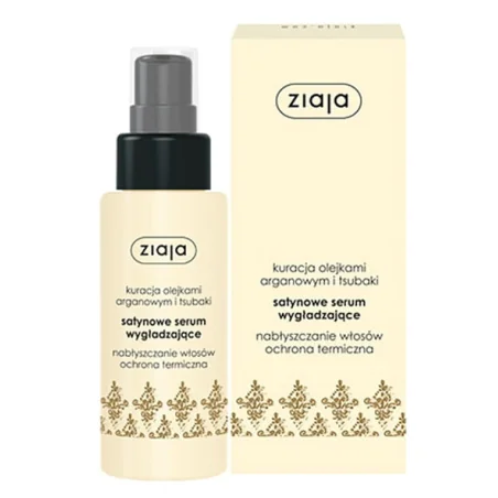 Satynowe serum wygładzające Ziaja to profesjonalna kuracja olejkowa stworzona dla włosów suchych, zniszczonych i po zabiegach fryzjerskich. Dzięki zawartości olejku arganowego i tsubaki intensywnie regeneruje, nadaje gładkość oraz chroni włosy przed uszkodzeniami. Regularne stosowanie sprawia, że włosy stają się miękkie, lśniące i pełne życia.