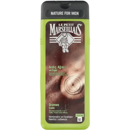 Le Petit Marseillais 3w1 Drzewo Cade 400 ml to męski żel pod prysznic, który łączy w sobie odświeżające działanie jałowca (Cade) oraz świeżość paproci, tworząc intensywny, naturalny i wyrazisty aromat. Formuła 3w1 pozwala na wygodne mycie ciała, twarzy i włosów, zapewniając czystość, komfort oraz długotrwałą świeżość na każdy