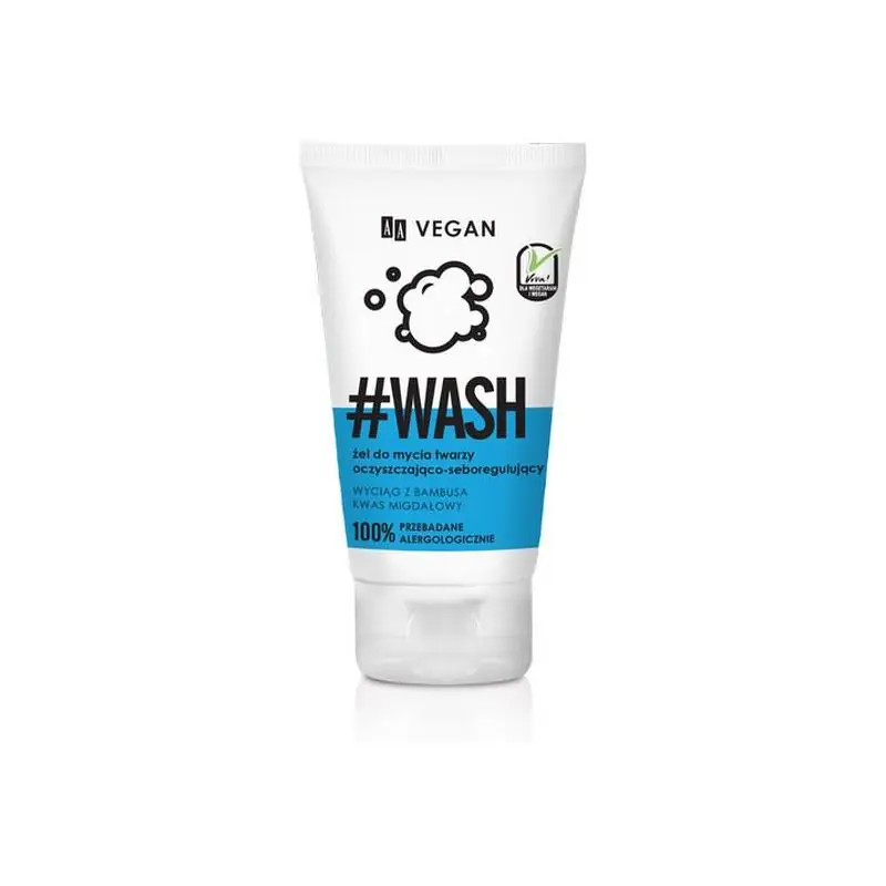 AA Vegan #Wash to oczyszczająco-seboregulujący żel do mycia twarzy, stworzony z myślą o skórze wymagającej skutecznego, a jednocześnie delikatnego oczyszczania. Zaawansowana receptura pomaga usuwać nagromadzone zanieczyszczenia, nadmiar sebum oraz zmniejszać widoczność porów, przywracając cerze świeżość, równowagę i zdrowy wygląd.