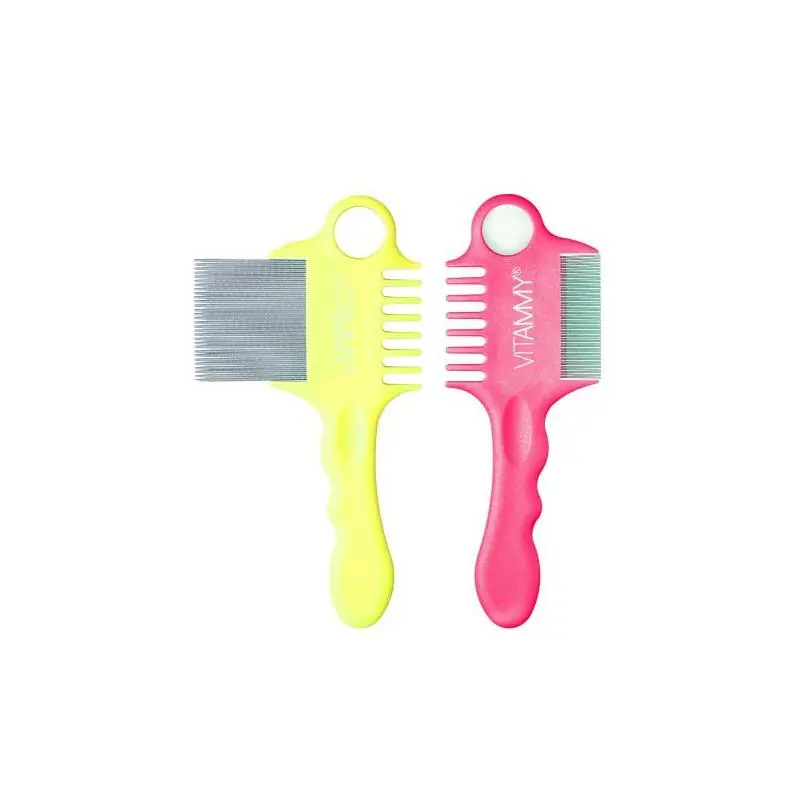 VITAMMY FINO zestaw grzebieni na wszy i gnidy to praktyczne i bezpieczne rozwiązanie do mechanicznego usuwania wszy oraz gnid z włosów dzieci i dorosłych. Zestaw składa się z dwóch grzebieni w kolorach Yellow oraz Pink, co ułatwia higieniczne użytkowanie przez więcej niż jedną osobę.