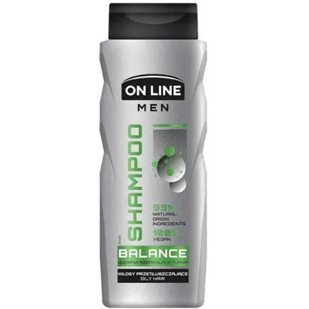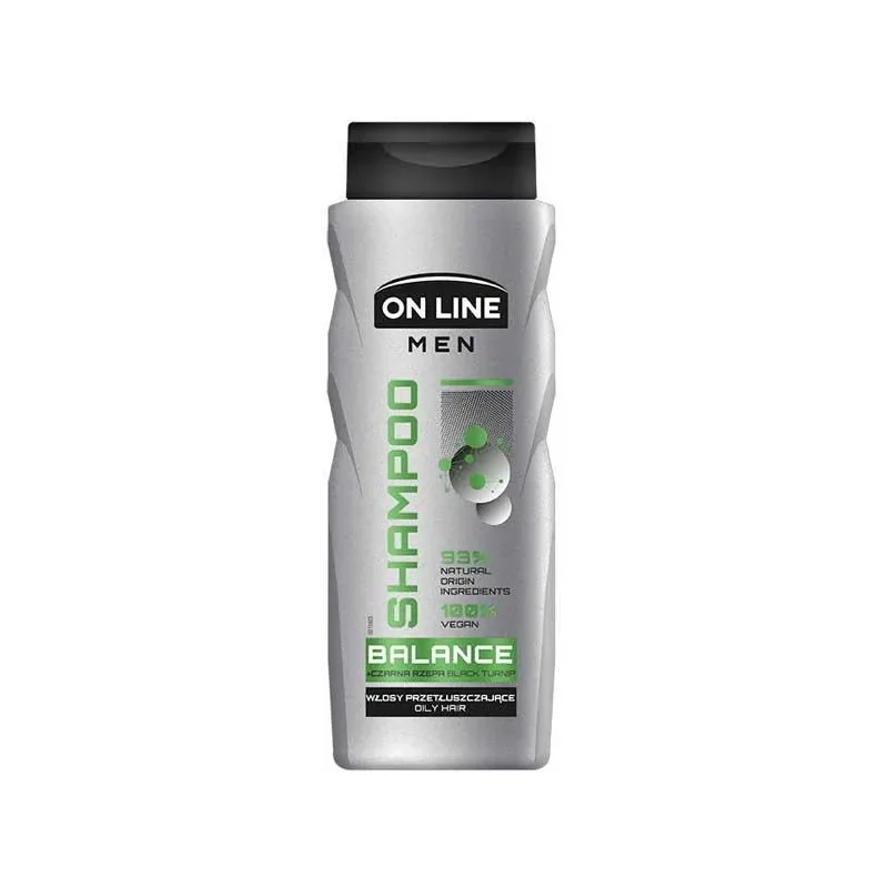 ON LINE MEN Balance to szampon stworzony specjalnie dla mężczyzn z przetłuszczającymi się włosami. Dzięki swojej wegańskiej formule i zawartości ekstraktu z czarnej rzepy skutecznie oczyszcza skórę głowy, ograniczając nadmierne wydzielanie sebum. Regularne stosowanie sprawia, że włosy stają się świeże, lekkie i pełne energii.