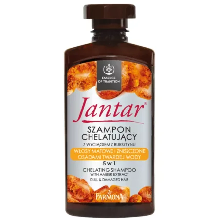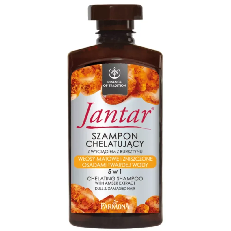 Szampon Jantar chelatujący 5w1 to idealne rozwiązanie dla włosów matowych i osłabionych działaniem twardej wody. Dzięki połączeniu naturalnego wyciągu z bursztynu oraz składników nawilżających i wzmacniających, włosy stają się mocne, odżywione i jedwabiście gładkie. Regularne stosowanie pomaga przywrócić naturalny blask i zdrowy wygląd włosów, eliminując matowość i szorstkość spowodowaną osadami.