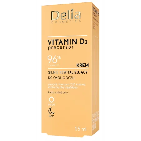 Krem pod oczy Delia Vitamin D3 Precursor przywraca młodzieńczy blask i komfort skórze zmęczonej, matowej lub trądzikowej. Redukuje drobne linie i zmarszczki, poprawia elastyczność, a jednocześnie intensywnie nawilża i regeneruje. Codzienna aplikacja upraszcza pielęgnację i zapewnia kompleksową ochronę wrażliwej skóry wokół oczu.