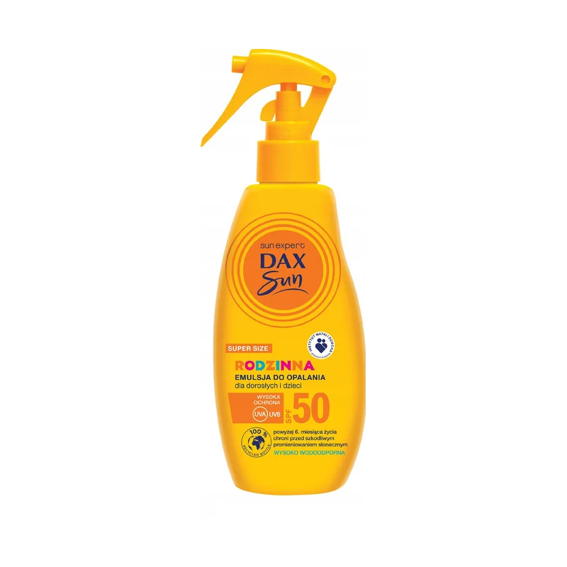 Dax Sun SPF50 to emulsja idealna dla całej rodziny, która łączy wysoką ochronę przeciwsłoneczną z intensywną pielęgnacją skóry. Skutecznie chroni przed UVA/UVB, nawilża i łagodzi podrażnienia, minimalizując ryzyko alergii słonecznych. Wodoodporna i fotostabilna formuła sprawia, że skóra pozostaje bezpieczna nawet podczas długiego pobytu na słońcu.