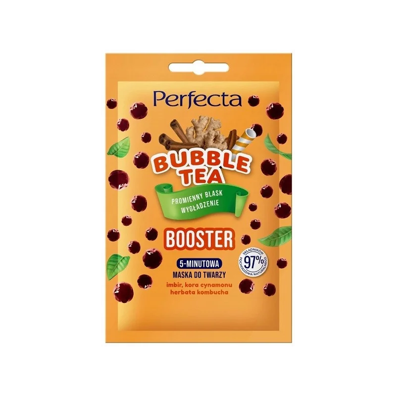 Maska Perfecta Bubble Tea zapewnia energiczny efekt promiennej cery. Kremowo-żelowa konsystencja z witaminowymi kuleczkami pozwala na przyjemny masaż twarzy, uwalniając witaminę E. Skóra staje się gładka, odżywiona i pełna blasku już po kilku minutach.