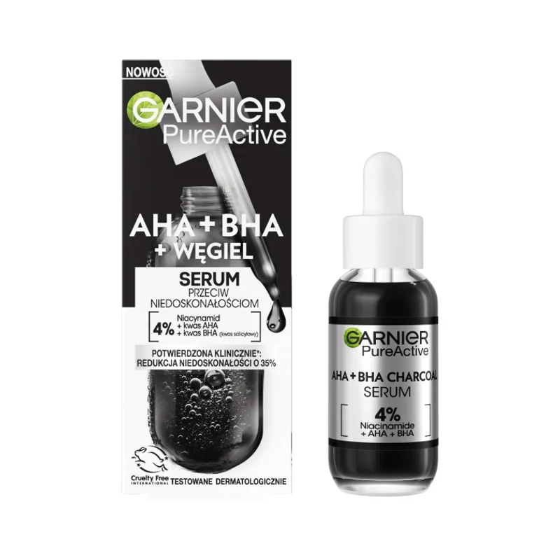 Garnier Pure Active czarne serum to skoncentrowane rozwiązanie dla skóry z niedoskonałościami. Regularne stosowanie pomaga wygładzić strukturę skóry, wyrównać koloryt i zwęzić pory. Węgiel naturalnego pochodzenia oczyszcza skórę i zapewnia efekt matujący, a aktywne kwasy złuszczają martwy naskórek, pozostawiając skórę świeżą, czystą i zdrowo wyglądającą.
