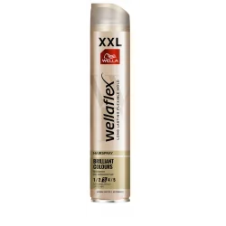 Wellaflex Brilliant Colours to lakier do włosów stworzony specjalnie z myślą o włosach farbowanych. Zapewnia elastyczne utrwalenie na poziomie 3, jednocześnie chroniąc intensywność koloru i podkreślając jego naturalny połysk. Dzięki dopracowanej formule fryzura