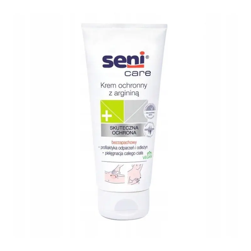 Odkryj Krem ochronny przeciw odparzeniom Seni Care z argininą, specjalistyczny preparat stworzony do codziennej pielęgnacji skóry osób unieruchomionych, obłożnie chorych oraz z problemem nietrzymania moczu. Krem skutecznie łagodzi podrażnienia i zapobiega ich powstawaniu, co redukuje ryzyko odparzeń i odleżyn, jednocześnie pozostając bezzapachowy i delikatny dla skóry.