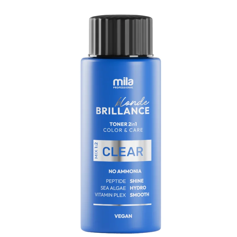 Toner Mila Pro Blonde Brilliance Clear do włosów bezbarwny 60 ml to profesjonalny toner do włosów, stworzony z myślą o pracy nad wyglądem koloru, połyskiem i estetycznym wykończeniem fryzury. Bezbarwna formuła sprawdza się wszędzie tam, gdzie celem jest odświeżenie wyglądu włosów, podkreślenie blasku i nadanie pasmom bardziej dopracowanego efektu. To praktyczny wybór dla osób, które szukają bezbarwnego tonera do włosów 60 ml o profesjonalnym charakterze.