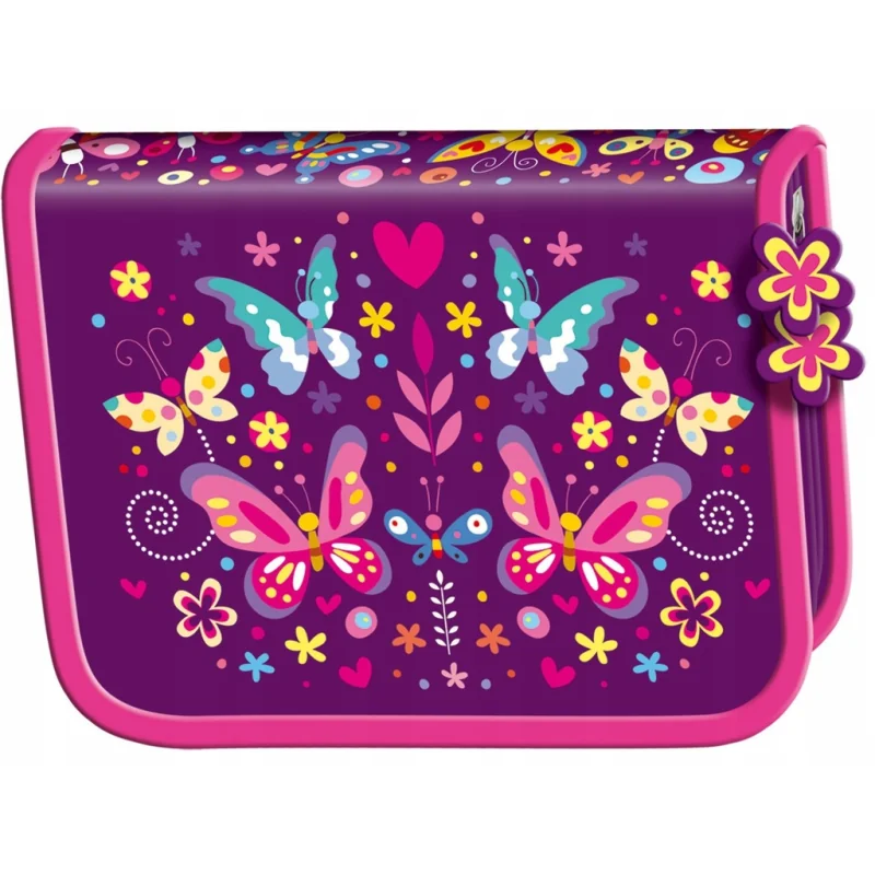 Piórnik pojedynczy z dwiema klapkami, zamykany za pomocą zamka błyskawicznego. Wykonany z materiałów wysokiej jakości. Posiada przegrody i liczne mocowania ułatwiające organizację przyborów szkolnych. We wnętrzu plan lekcji i tabliczka mnożenia ozdobione motywami licencyjnymi korespondującymi z estetyką całego piórnika. Piękna grafika na