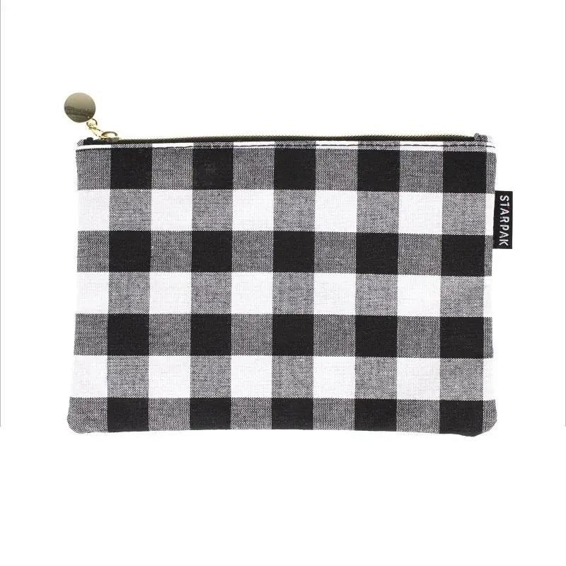 Saszetka z zamkiem błyskawicznym w biało czarną kratkę to praktyczne i lekkie rozwiązanie do przechowywania podstawowych artykułów piśmienniczych. Kompaktowy format sprawia, że bez problemu mieści się w plecaku, torbie szkolnej lub organizerze, nie zajmując dużo miejsca.