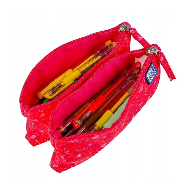 Saszeta podwójna Oxford Floral ciemnoróżowy to praktyczny i estetyczny przybornik szkolny, który pomieści długopisy, ołówki, kredki i drobne akcesoria. Elegancki wzór floral w ciemnoróżowym odcieniu łączy modny design z wysoką funkcjonalnością, a podwójne