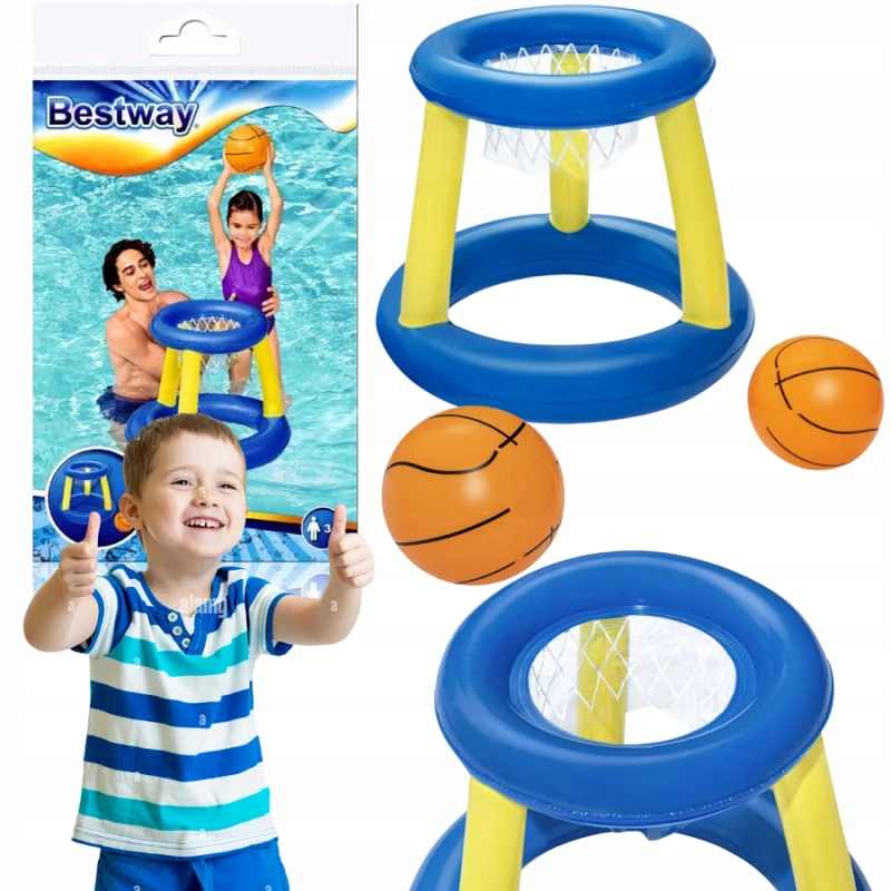 Dmuchany zestaw koszykówka Bestway to świetny sposób na aktywną zabawę w wodzie. Sprawdzi się podczas rodzinnych wakacji, w przydomowym basenie, na plaży lub podczas imprez plenerowych. Wspiera koordynację ruchową dzieci i zachęca do wspólnej rywalizacji w bezpieczny, przyjazny sposób.