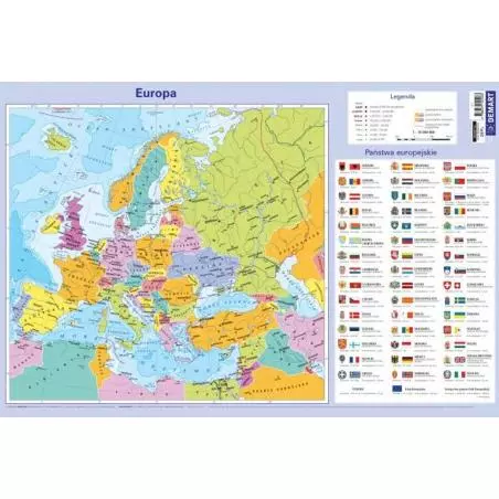 Mapie Europy z podziałem politycznym w skali 1:15 000 000 towarzyszą symbole