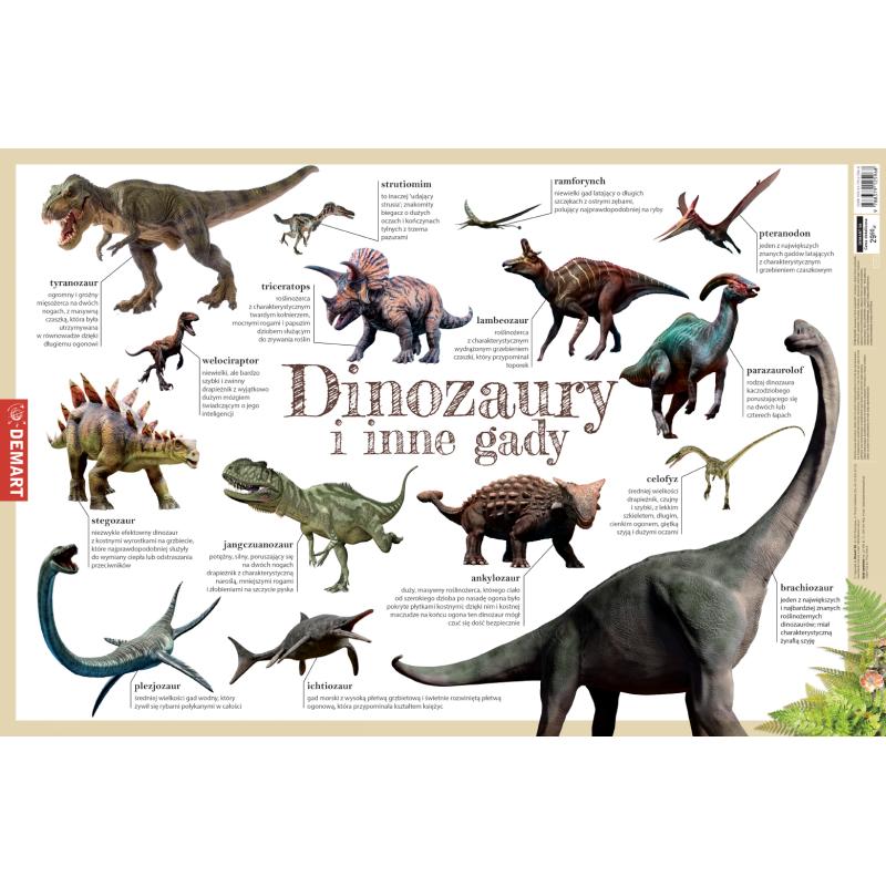 Podkładka na biurko „Dinozaury i inne gady” to atrakcyjna pomoc edukacyjna dla dzieci, które fascynują się prehistorią i światem dawnych zwierząt. Produkt łączy funkcję ochrony biurka z nauką poprzez zabawę, prezentując realistyczne ilustracje prehistorycznych gadów w formie