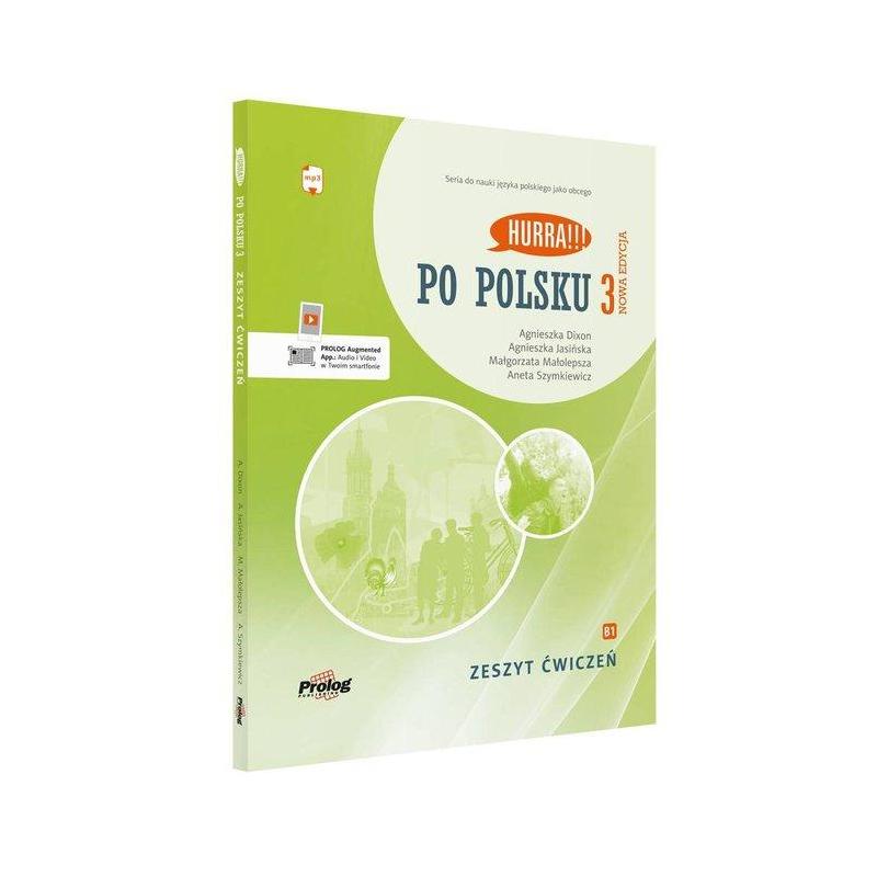 HURRA!!! PO POLSKU 3 Zeszyt ćwiczeń. Nowa Edycja zawiera: ćwiczenia gramatyczne i leksykalne wspomagające aktywne opanowanie słownictwa, a w efekcie swobodną komunikację, 4 lekcje powtórzeniowe, z samooceną postępów, klucz z rozwiązaniami ćwiczeń, nagrania MP3 do każdej lekcji – do pobrania online, transkrypcje nagrań, wszystkie nagrania Audio dostępne w telefonie, w aplikacji PROLOG Augmented App dostępnej do pobrania bezpłatnie w Google Play i App Store.