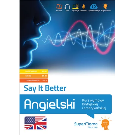 MÓW JAK NATIVE SPEAKER!Opanuj angielską wymowę w dwóch standardowych odmianach - brytyjskiej i amerykańskiej. Kurs pomoże Ci brzmieć jak native speaker i bez problemu rozumieć ze słuchu naturalny, codzienny język. Say It Better. Angielski to zawierająca 132 strony książka z kursem wymowy, skierowana do osób na różnym poziomie zaawansowania. Każdy z 54 rozdziałów przedstawia sposób wymawiania danego dźwięku, przykłady wyrazów, w których występuje, i najczęstsze błędy, jakie popełniają osoby uczące się angielskiej wymowy. Publikacja obejmuje dostęp do nagrań MP3 oraz różnorodnych ćwiczeń, które w serwisie i aplikacjach SuperMemo wspiera autorska metoda inteligentnych powtórek. W książce znajdziesz: - opis wszystkich dźwięków wymowy brytyjskiej i amerykańskiej - przykłady dźwięków w wyrazach - typowe błędy w wymowie - ćwiczenia - klucz odpowiedzi.Kupując książkę, otrzymujesz kod dostępu do multimedialnej wersji kursu z nagraniami MP3 i ćwiczeniami, dostępnej w aplikacjach i na platformie SuperMemo.com. Zawartość podręcznika może nieznacznie odbiegać od materiału kursów online w SuperMemo.com – w kursach mogą wystąpić np. dodatkowe/inne zadania lub ćwiczenia, których nie ma w książce. Niezbędne wymagania techniczne dotyczące korzystania z materiałów multimedialnych znajdują na stronie SuperMemo.apps.SuperMemo.com to między innymi: - indywidualny dostęp do kursów na platformie internetowej i w aplikacjach SuperMemo (Windows, Android, iOS), online i offline - nagrania MP3 - automatyczna synchronizacja postępów nauki między Twoimi urządzeniami - funkcja rozpoznawania mowy, która interpretuje Twoją odpowiedź i motywuje Cię do wypowiadania się na głos podczas wykonywania ćwiczeń - oparta o badania naukowe, wielokrotnie nagradzana autorska metoda inteligentnych powtórek SuperMemo, pozwalająca zapamiętywać tysiące słów i informacji z blisko 100% skutecznością.